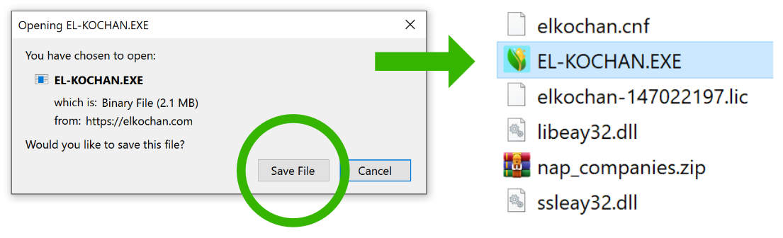 Изтеглете изпълнимия файл "EL-KOCHAN.EXE" и го запишете във вече създадената папка.